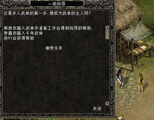 第一步找到向导,领取第一个任务,如果您不知道向导是谁您可以按ALT可以显示周围怪物,人物以及物品的名称都会显示