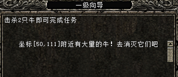 点击接受任务,第一个任务是击杀2只牛,只需要根据提示,找到坐标,就可以轻松找到牛的位置,您可以