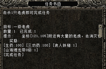第五个任务是击杀一只(一级老虎),老虎也是自动攻击的怪物哦