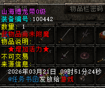 第五个任务完成会给惊喜哦,是本服的特色物品,会给予一个山海缚龙带0级